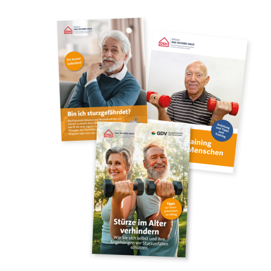 Weitere Tipps und passende Übungen zur Sturzprävention bietet unser kostenloses Seniorensicherheitspaket mit vier Medien zur Sturzprävention.