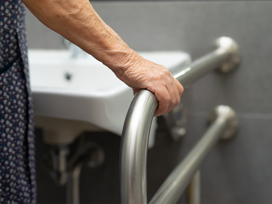 Im Bad erhöhen nasse Böden und hohe Wannenränder das Sturzrisiko. Halte- und Unterstützungssysteme sorgen für Sicherheit: