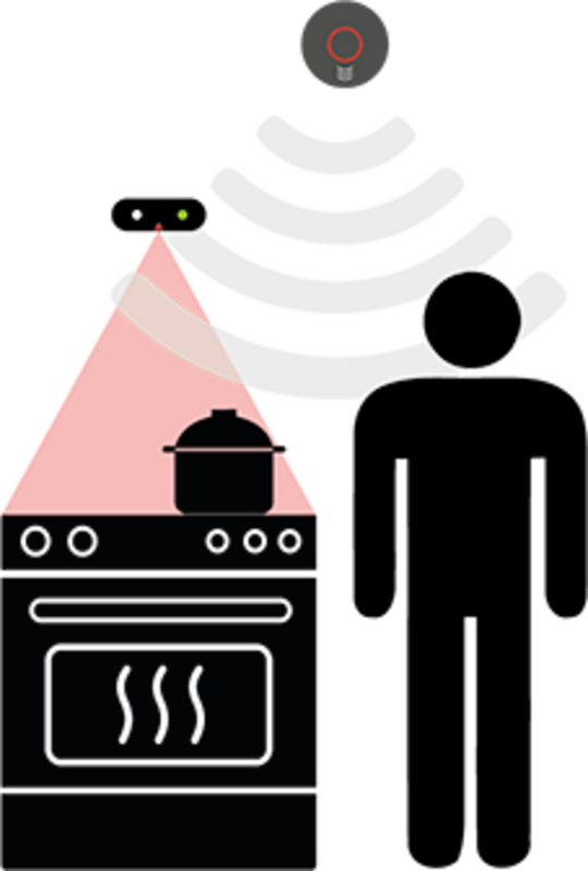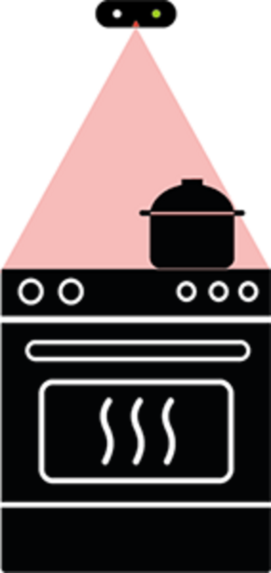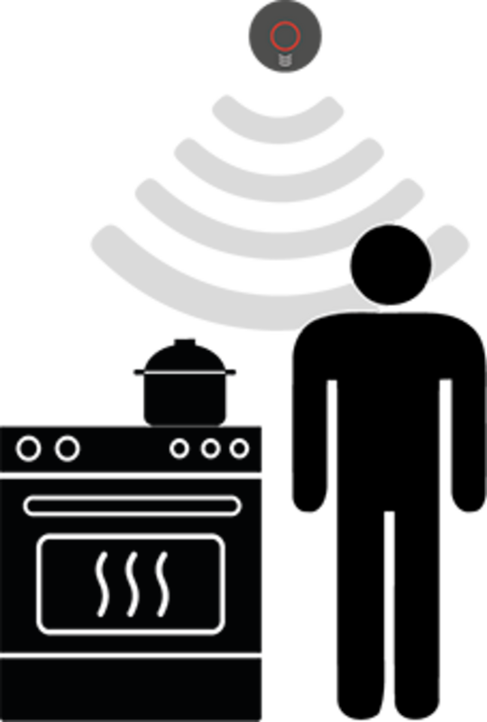 Ein Sensor über oder hinter dem Herd bzw. an der Küchendecke registriert Bewegungen und somit die Anwesenheit einer Person. Findet innerhalb der voreingestellten Zeit keine Bewegung statt, trennt das System den Herd vom Strom.